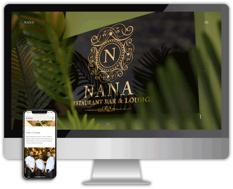 Moderan dizajn i minimalistički izgled rađen je kod Nana Restaurant Bar & Louge. Počevši od izrade logotipa, preko jelovnika i reklamnih artikala takođe smo koncipirali i izradili internet stranicu