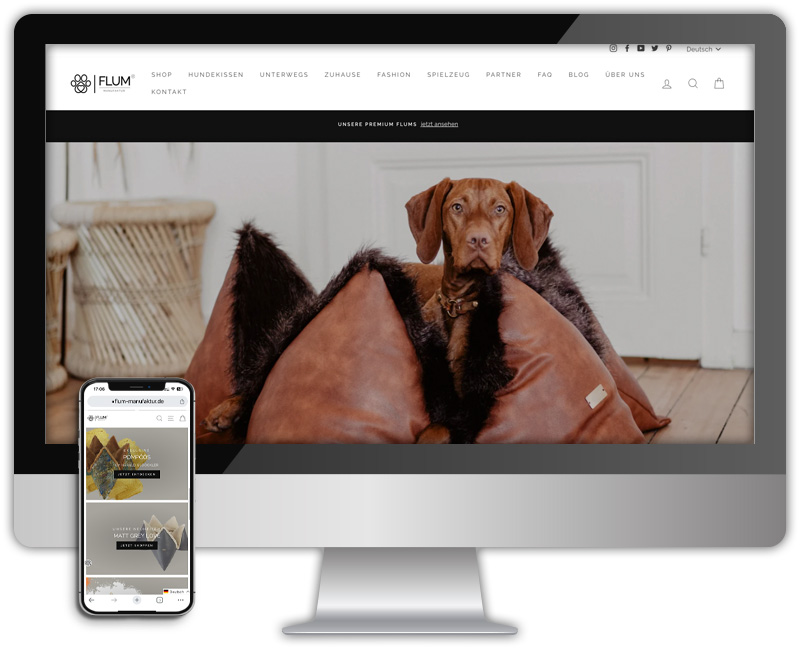 Flum Manufaktur je kompanija koja proizvodi jastuke za pse i to u izuzetno kvalitetnoj ručnoj izradi. Optimizovali smo već postojeću Shopify prodavnicu i proširili njenu funkcionalnost. Takođe smo razvili online- i social marketing strategiju za ovu kompaniju.