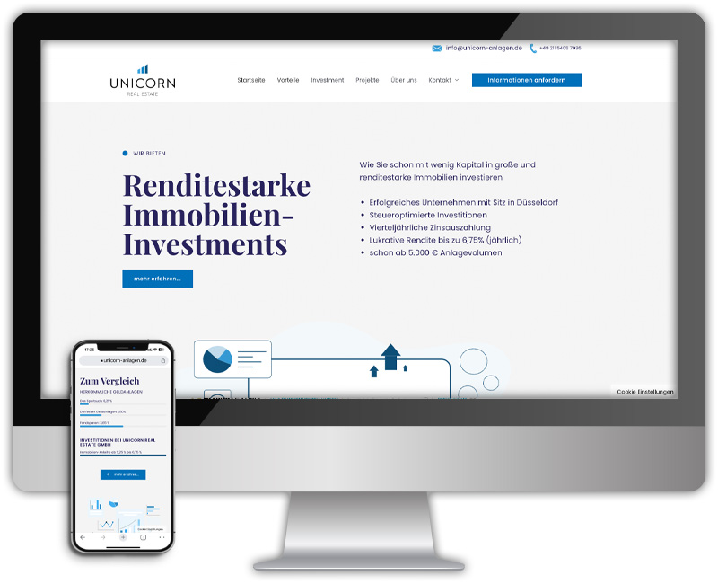 Unicorn Real Estate GmbH je kompanija specijalizovana za luksuzno saniranje i renoviranje nekretnina. Bilo je potrebno uraditi landing stranicu za online marketing kompanije. Klijent se pored brojnih predloga za izgled stranice odlučio za naše idealno rešenje.