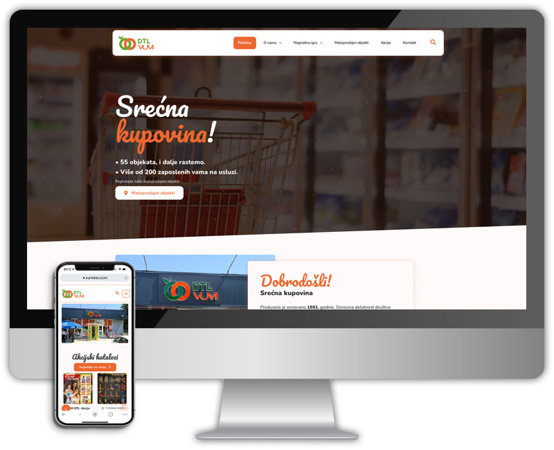 Za trgovinski lanac Vum iz Šapca radili smo novu internet stranicu koju smo potom integrisali na novi inostrani server. Pored reprezentativne stranice urađen je i news-blog kao i mapa sa lokacijama svih Vum marketa.