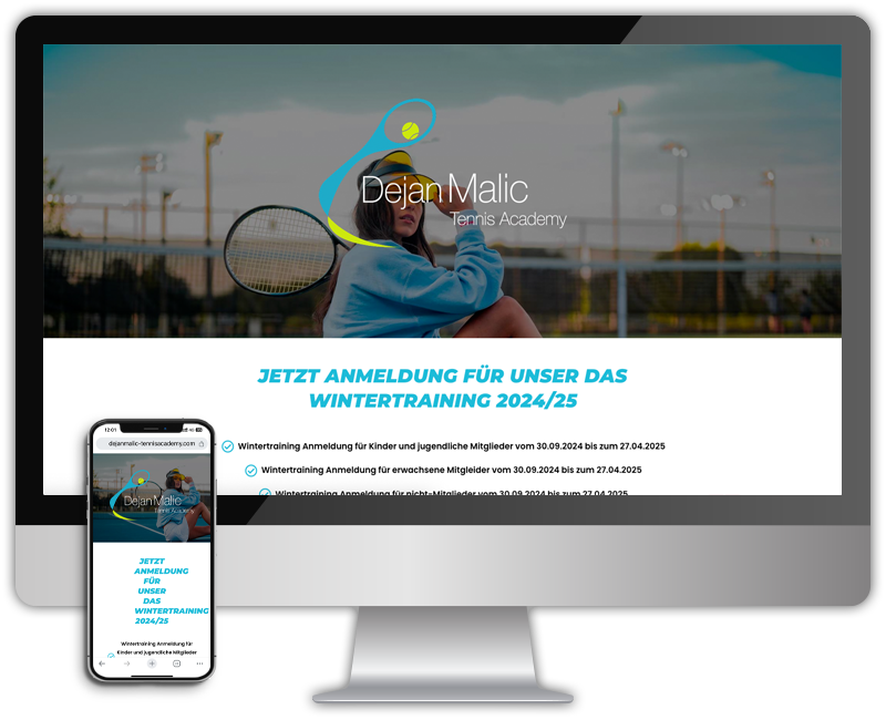 Napravljena je jednostavna stranica za Tenisku akademiju klijenta. Dodatne opcije za rezervacije i obrasci su integrisani u sajt za njegove kurseve. Takođe smo kreirali sadržaj i reklame za oglašavanje na društvenim mrežama za kupca.